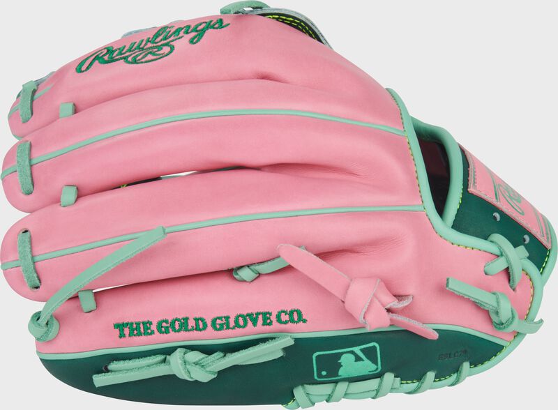 Featuring a bright pink leather shell accented by dark green, this glove is as eye-catching as it is high performing. This glove resembles the favorite summer fruit to help you stand out on the field. Complete with a stylish watermelon embroidered on the thumb and palm stamp, this glove is the perfect blend of seasonal cheer and legendary craftsmanship. Plus, each one of these 144 gloves is individually numbered, so yours will be truly one of a kind.