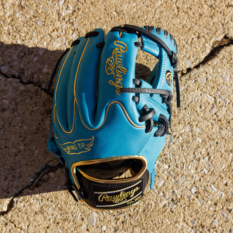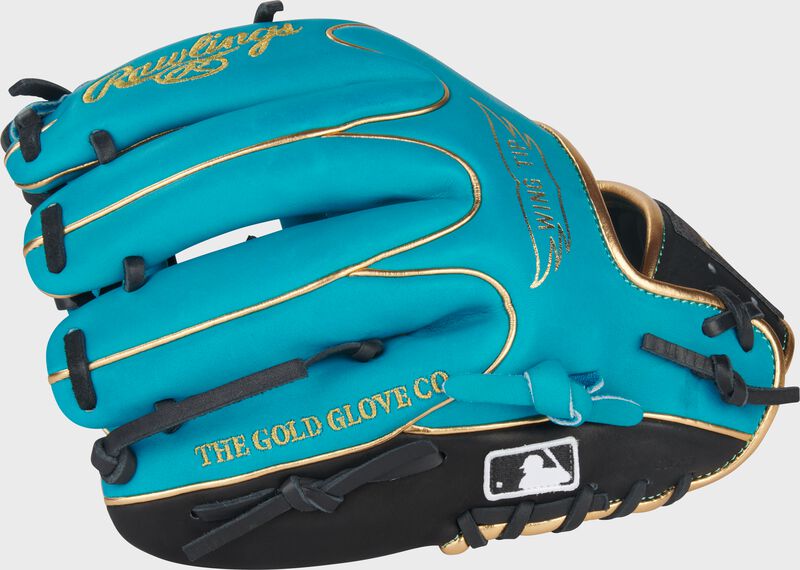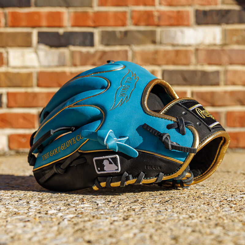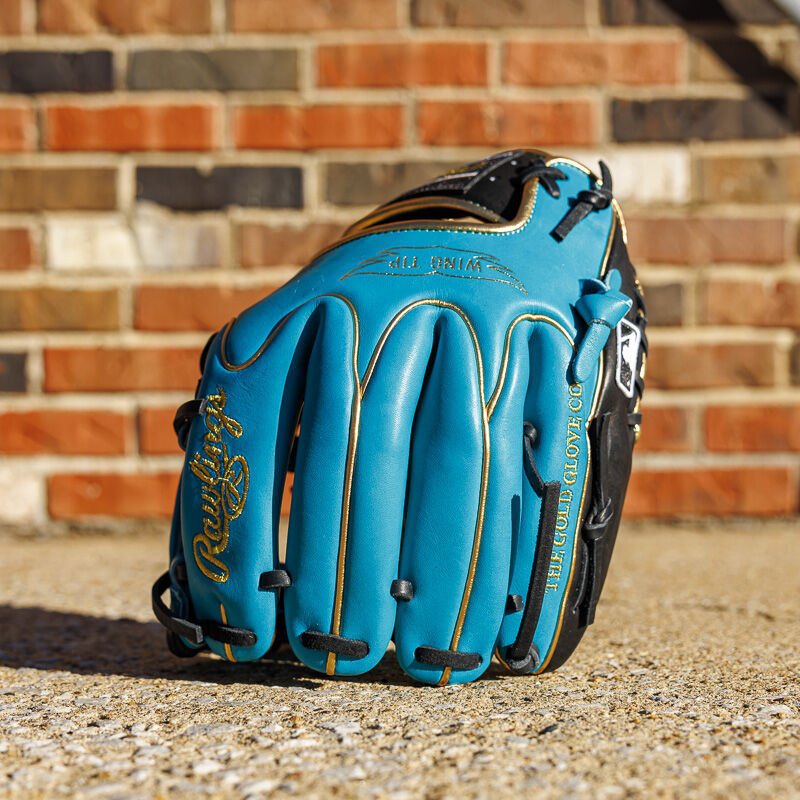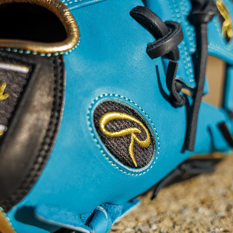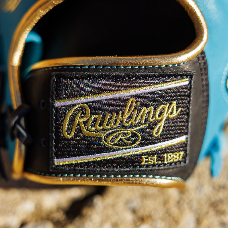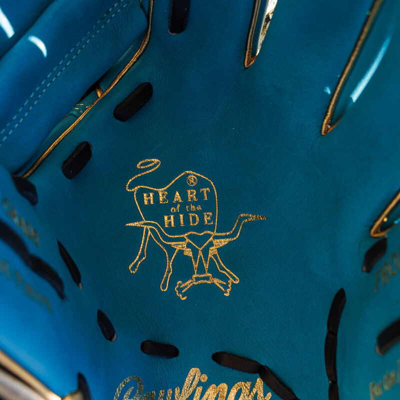 Stand out on the field with this exclusive 11.5-inch Rawlings R2G Heart of the Hide teal, black and gold infield glove!