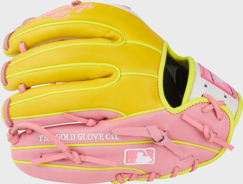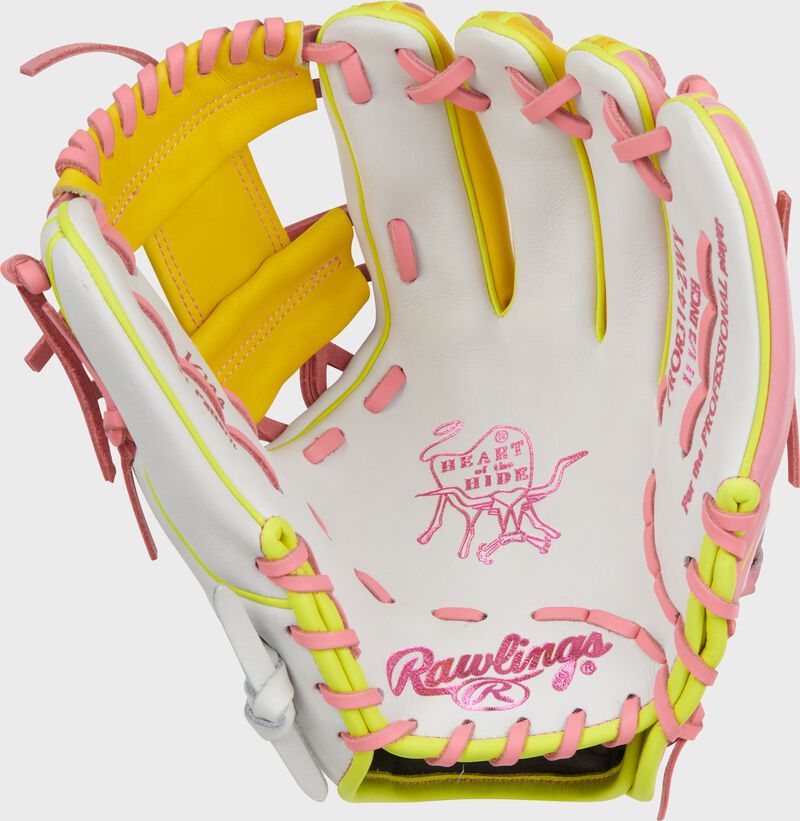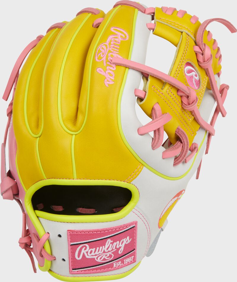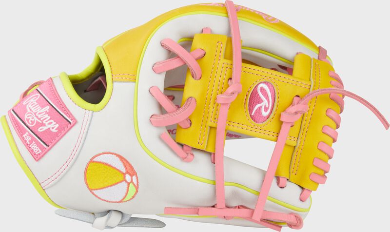 Bring the energy with this limited-edition embroidered Men’s College World glove. Inspired by the great vibes of the MCWS, this glove features a sleek mix of pink, white, and yellow, capturing the fun of summer and spirit of championship play. Its unique Rawlings patch and embroidered beach ball add positive vibes and energy to a glove built for serious moments under the lights.